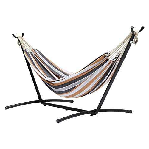 Amazon Basics Double Hammock with 9-Foot Space Saving Steel Stand and Carrying Case, Multi Color, 400 lb Capacity