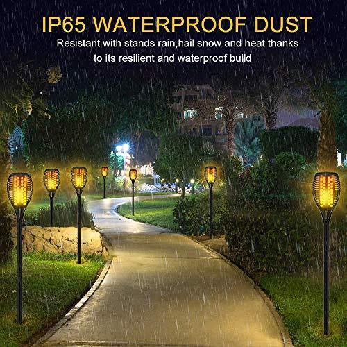 - 🔥AMAZING FLICKERING FLAMES SOLAR LIGHTS : This solar flame torch light is a safe alternative to the real “flames”. 96 LEDs in the light cast a safe, soft, mood-enhancing glow,provide a perfect campfire atmosphere for your yard,garden,party, BBQ and camping.