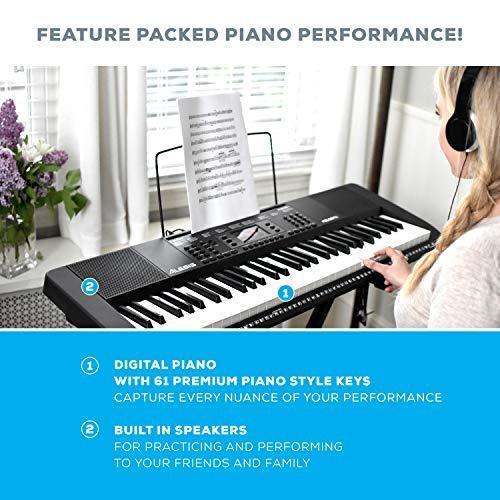• Feature Packed Digital Piano for Beginners – Portable Electric keyboard piano with 61 premium piano style keys and built in speakers for practicing and performing to your friends and family