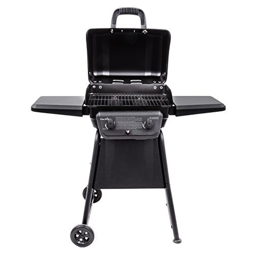 Details: The American Gourmet Classic 2B 280 is a two burner gas grill that delivers 20,000 BTU's of heat & a 280 square" cooking surface to accomodate large meals with ease. The primary cooking surface measures" wide x" deep, for a total of 280 square" of cooking space. The grates are porcelain-coated, making them rust-resistant & easy to both cook on & clean. The classic 280 offers 2 metal side shelves, which are durable & provide much needed work & prep space, each measuring" wide x" deep. The grills sits on two fixed' & two 6-inch wheels, for both portability & stability. Features piezo ignition for fast & reliable startups, & in-line stainless steel burners which are built to last. The steel lid & firebox are both porcelain-coated, making the American Gourmet Classic 280 capable of withstanding the weather & elements. Assembled dimensions: 45inches w x 24inches L x 41inches H.