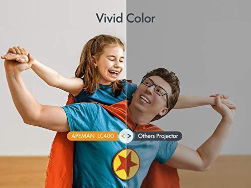 Details: APEMAN LC400 is designed for home cinema night entertainment with your family or friends and not suitable for teaching presentation, business presentation or other open-air films. Our design philosophy is to bring the customer a satisfactory projector experience at a reasonable price. And we are here to offer you a satisfactory and professional customer service all the time.