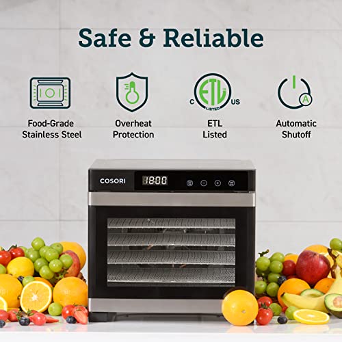 - DESIGNED IN CALIFORNIA: Comes with 6 Stainless Steel Trays, 1 Mesh Screen, 1 Fruit Roll Sheet, 1 Manual, 1 Recipe, Check out our VIDEO on the left side & take a quick tour of this COSORI Stainless Steel Food Dehydrator Machine (search for C267-2MS or C267-FR to get more accessories)