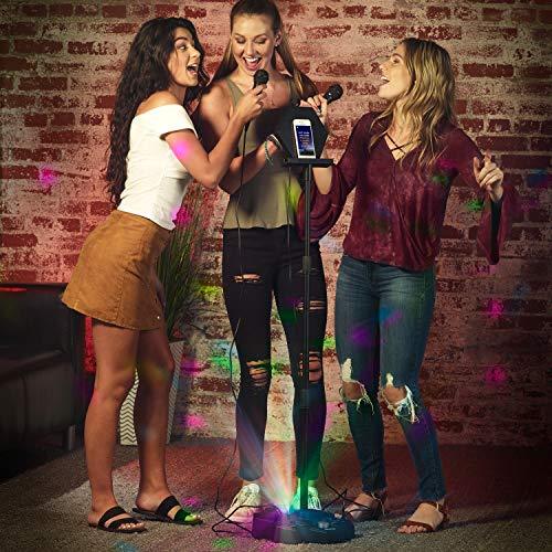 Details: Carpool Karaoke - Grab the mic and make the spotlight your own with the Singsation Performer All-In-One Party system! Its room-filling sound, 16 light effects, 8 sound effects, 10 voice effects and adjustable stand make it fun for all ages! The microphone stand is adjustable from 2' to 6' height and includes a cradle to hold your smartphone or tablet, which you can pair to sing along to your favorite music or YouTube videos. Two inputs allow you to add a second mic or guitar to double your fun. Go ahead and rock it your way because everyone can be a star!